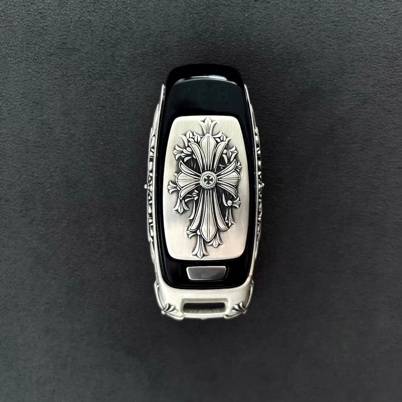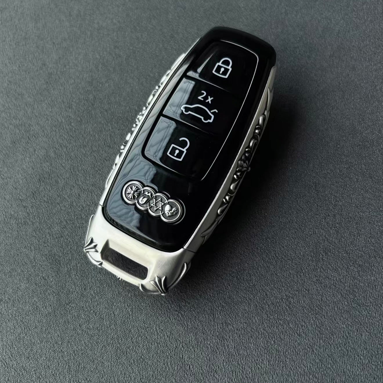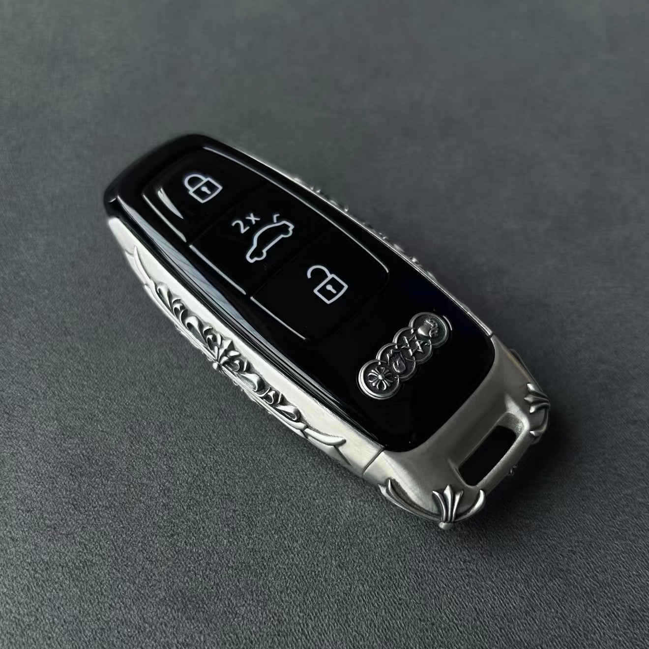 Designed for Audi smart keys, this 925 sterling silver case emphasizes clean geometry and subtle craftsmanship.